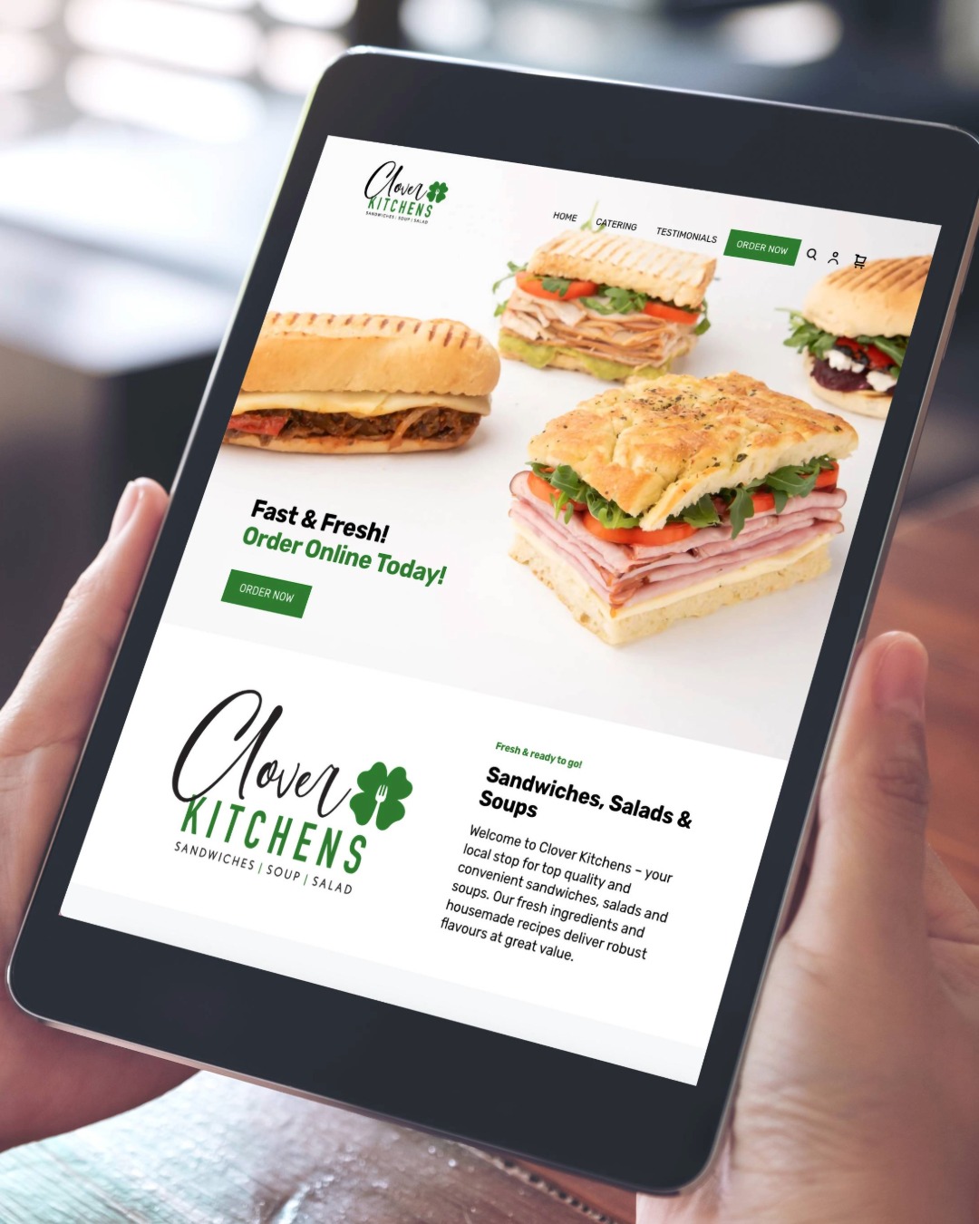 As Clover Kitchens expanded from catering to made-to-order sandwiches, we built a brand identity that grew with them while keeping their core promise: fresh ingredients, house-made recipes, exceptional service. A welcoming four-leaf clover and confident green palette anchor a warm, clean system, brought to life with crave-worthy food photography that elevates fast food into something personal.
